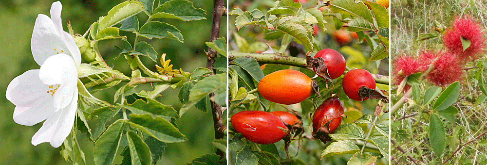 Cette touffe brun-rougeâtre sur le cliché du bas à droite est un parasite de l'églantier, appelé