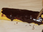 Recouvrir la bûche sans attendre (clichés f et g) et dessiner à la fourchette l'écorce et les noeuds du bois (cliché h).